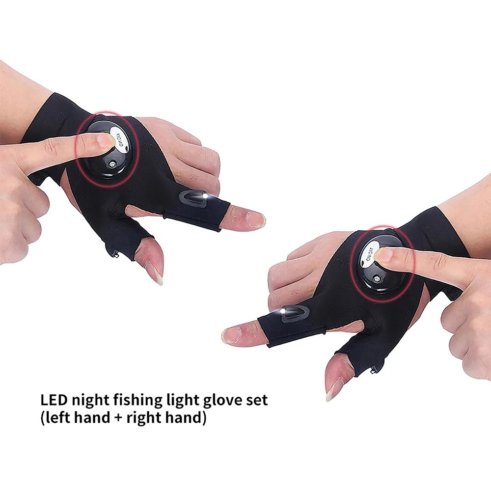Veilleuse gants de pêche imperméables avec lampe de poche LED outils de sauvetage équipement de plein air cyclisme pratique gants sans doigts durables